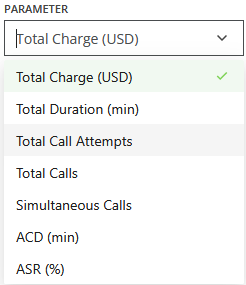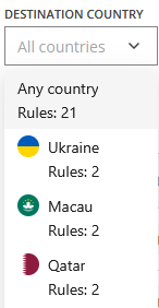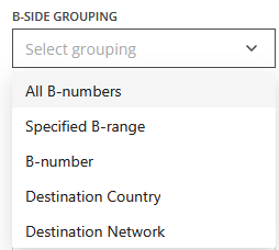 If you select "Destination Network" or "B-number", you need to choose a country and, optionally, a destination from the dropdown list, or enter them manually (by default, any country and all networks are selected):